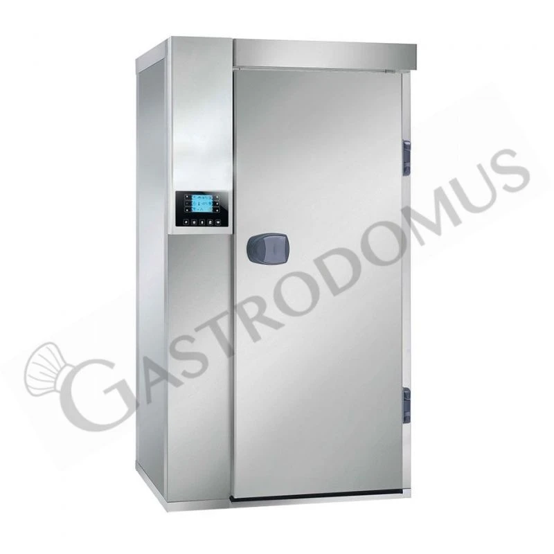 Abbattitore di temperatura digitale predisposto per l’inserimento di 20 teglie GN1/1 o 20 griglie 600 mm x 400 mm, temperatura ambiente + 35° C/ 65% RH, resa abbattimento 100 Kg +90°C/+3°C.