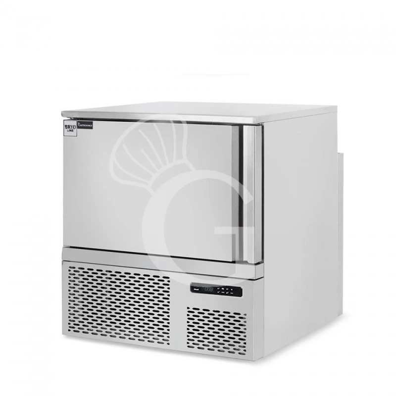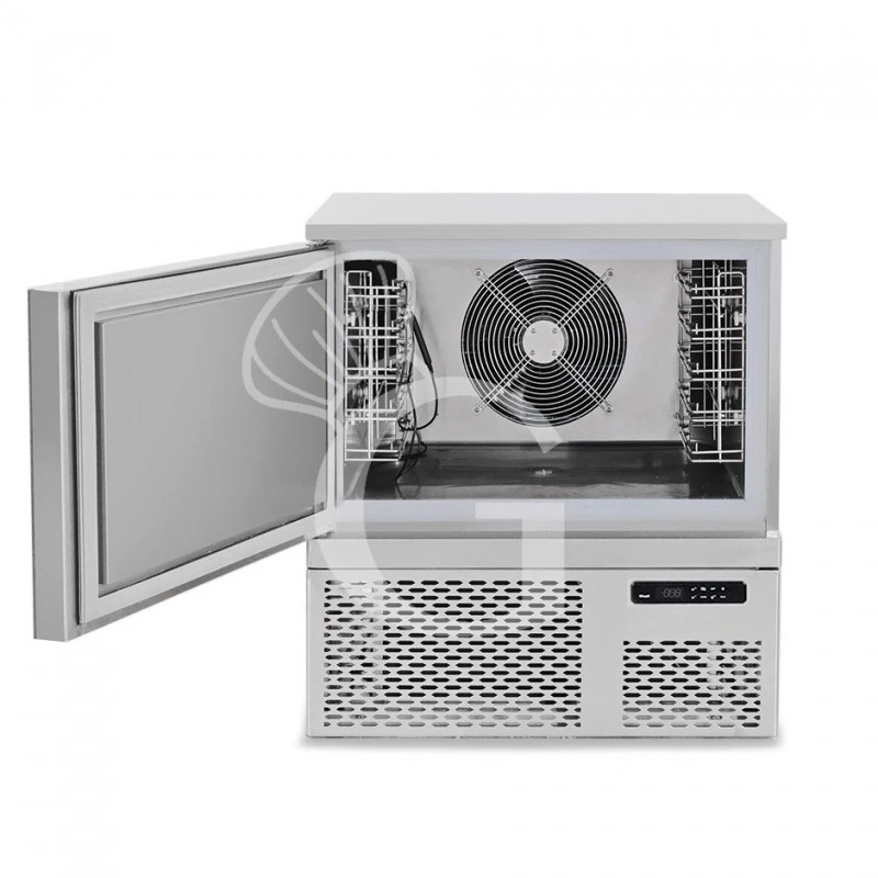 Abbattitore digitale Monofase in acciaio inox per 5 teglie/griglie GN 1/1 o 600x400mm, con ruote montate, temperatura -18°/+3°C.