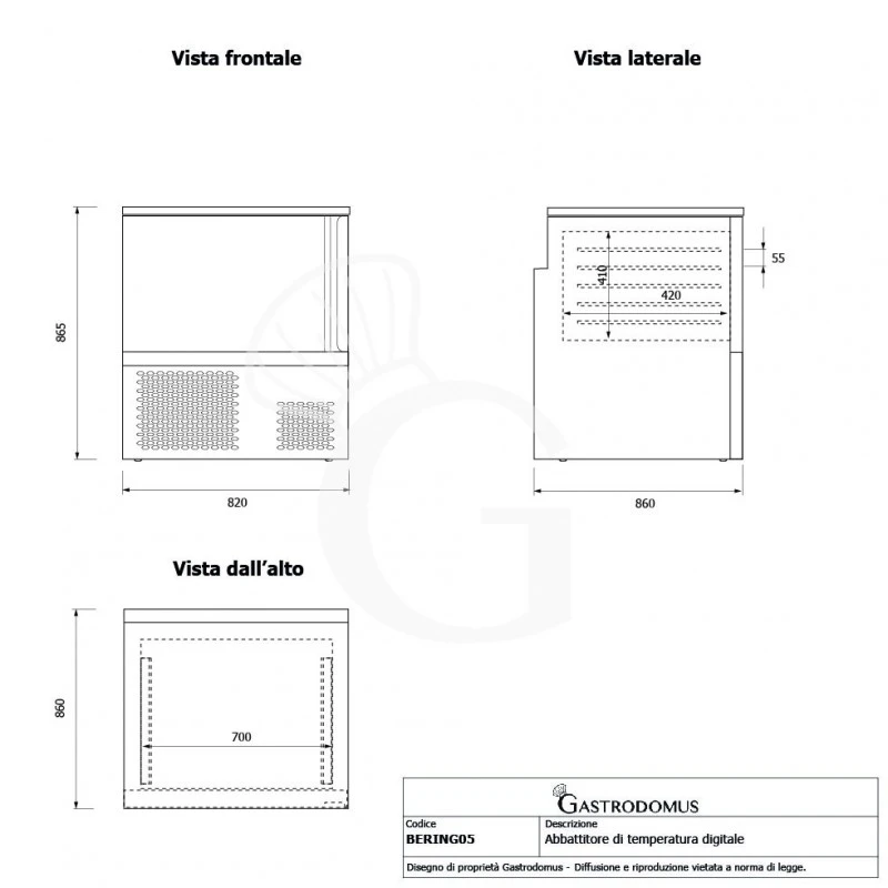 L’isolamento presenta uno spessore di 60 mm. Lo sbrinamento avviene in modo automatico al termine del ciclo impostato.