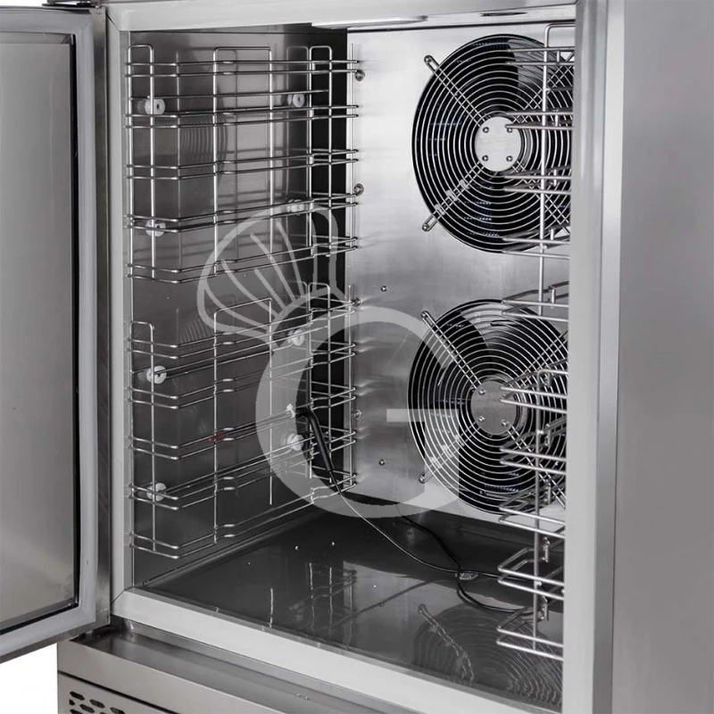 Abbattitore di temperatura digitale Trifase per 10 teglie GN1/1 o 600×400 mm , temperatura -18°C/+3°C, con ruote montate, in acciaio inox.