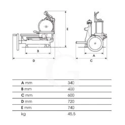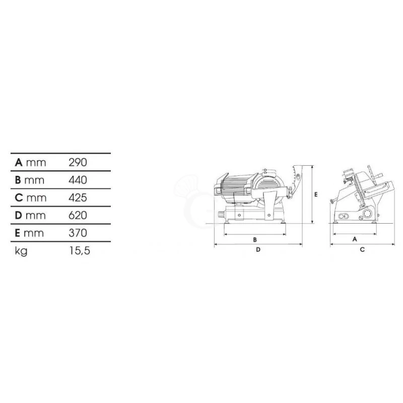 L 620 mm x P 425 mm x H 370 mm - Dimensioni lama affettatrice