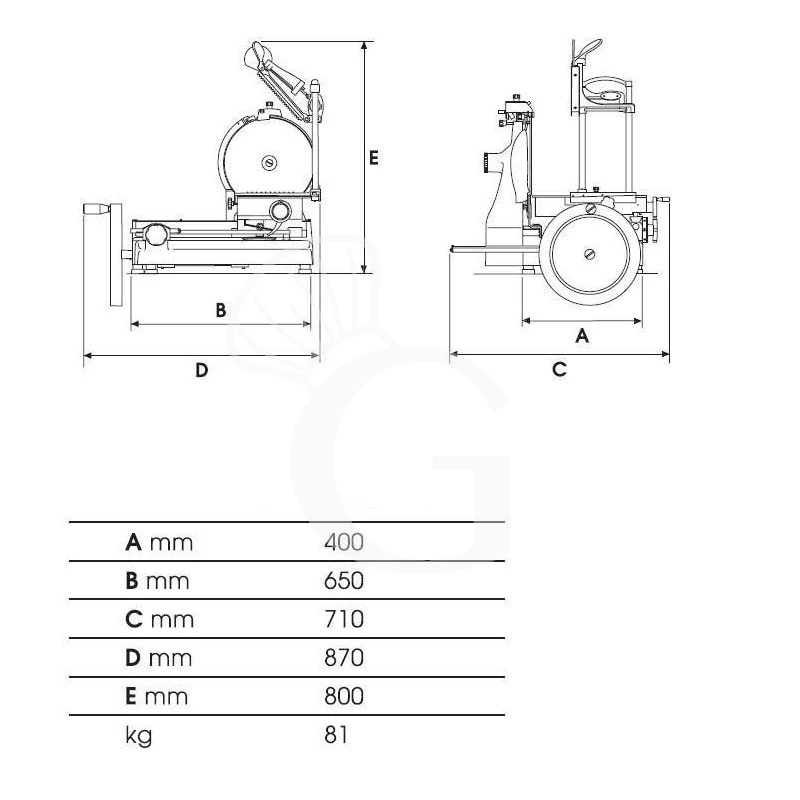 L 870 mm x P 710 mm x H 800 mm - Dimensioni lama affettatrice