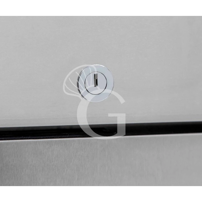 L’armadio possiede 2 porte cieche con impugnature ergonomiche, guarnizione magnetica facilmente estraibile e chiusura con chiave del vano refrigerato.