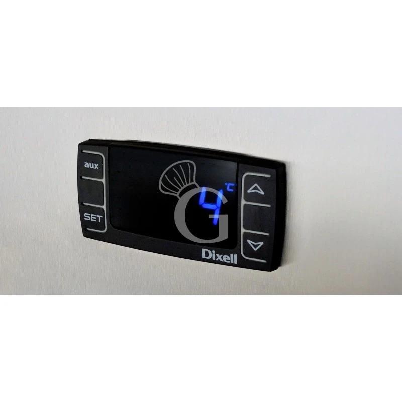 La temperatura è negativa (-18°C/-22°C) e può essere facilmente controllata e regolata tramite un termostato digitale posto sul pannello frontale il quale controlla anche lo sbrinamento, che avviene tramite gas caldo.