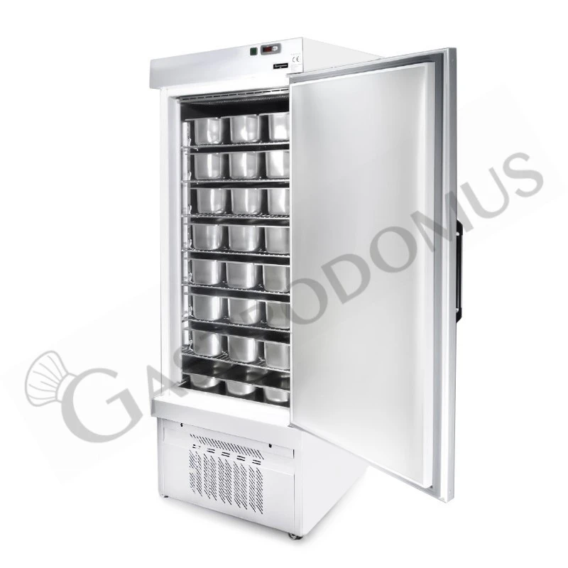 Armadio refrigerato ventilato negativo per gelateria, capacità 650 litri e temperatura regolabile da -35°C/-5°C.