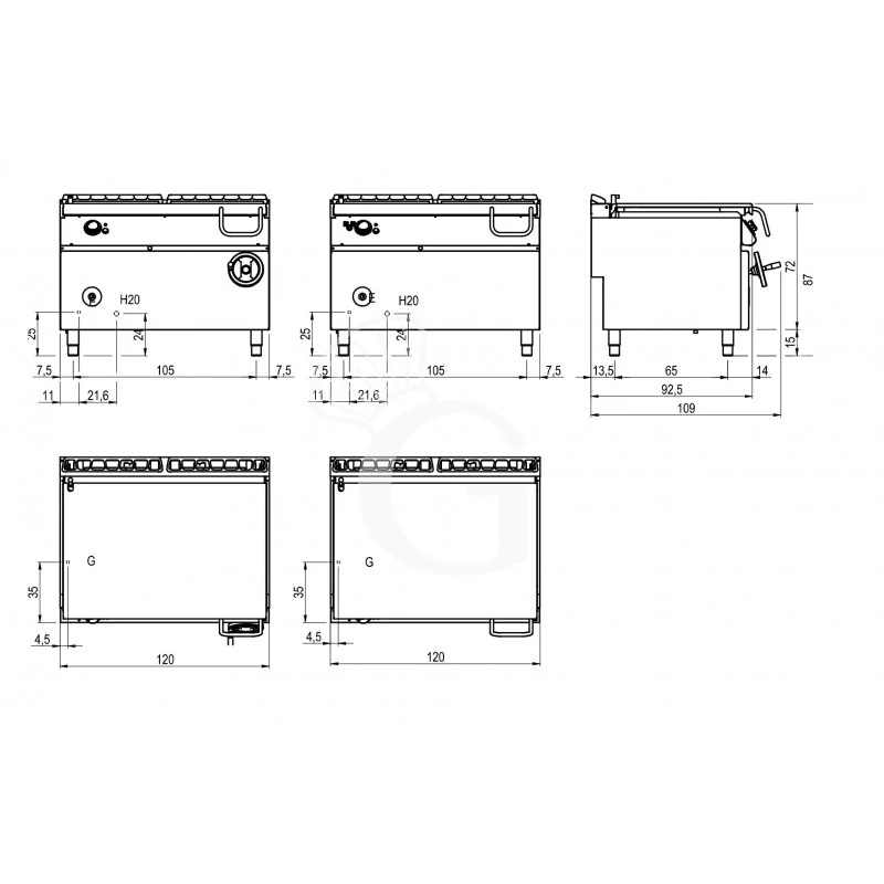 L 1200 mm x P 900 mm x H 870 mm - Profondità brasiera
