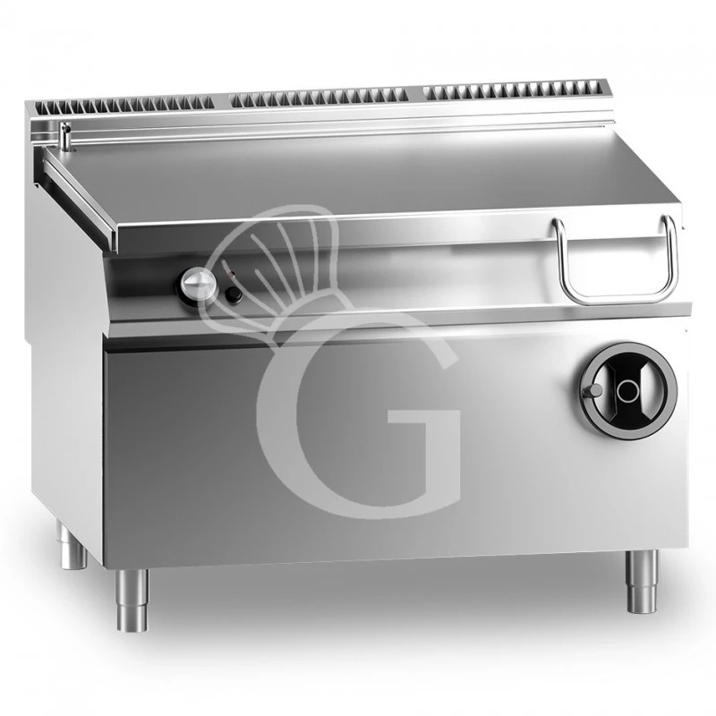 Brasiera a gas su mobile ribaltamento manuale e con una vasca di capacità 120 litri.