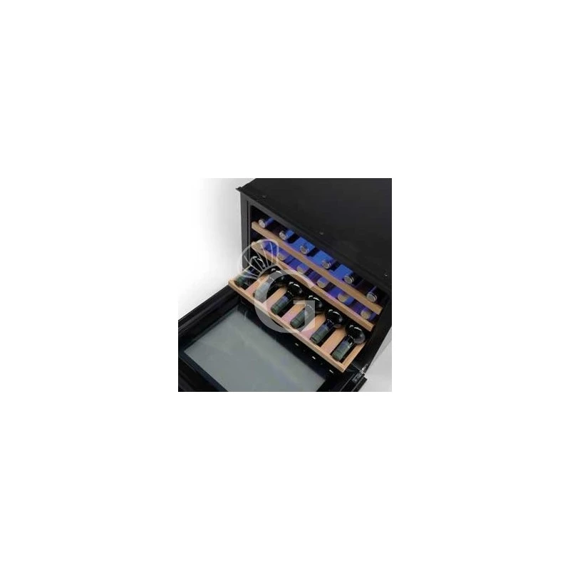 L’apparecchio ha una capacità di circa 24 bottiglie Bordolesi e presenta una zona refrigerata con la possibilità di regolare la temperatura in un range +5°C/+19°C.