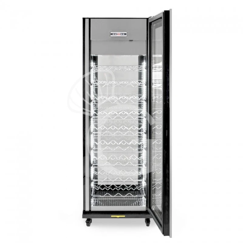 La centralina digitale controlla sia la temperatura sia lo sbrinamento. La raccolta dell’acqua di condensa avviene tramite vaschetta (inclusa).