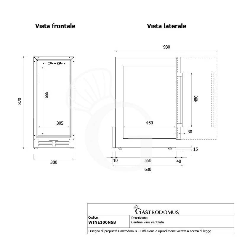 Cantinetta per vino 100 LT 7 ripiani capacità 31 bottiglie temperatura +5°C/+22°C.