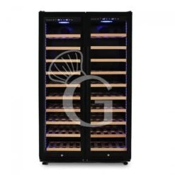 L’apparecchio ha una capacità di circa 306 bottiglie di capacità 750 ml (dimensione bottiglia: diametro 80 mm x H 300 mm) e presenta due zone refrigerate con la possibilità di regolare la temperatura in modo indipendente in un range da +5°C/+22°C nella parte destra, e da +5°C/+22°C nella parte sinistra.