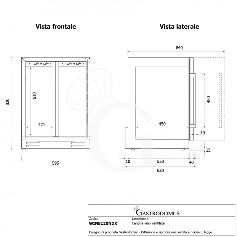 Cantina Vino Ventilata doppia temperatura porte inox 120 LT 12 ripiani 34 bottiglie +5°C/+12°C – +12°C/+22°C.