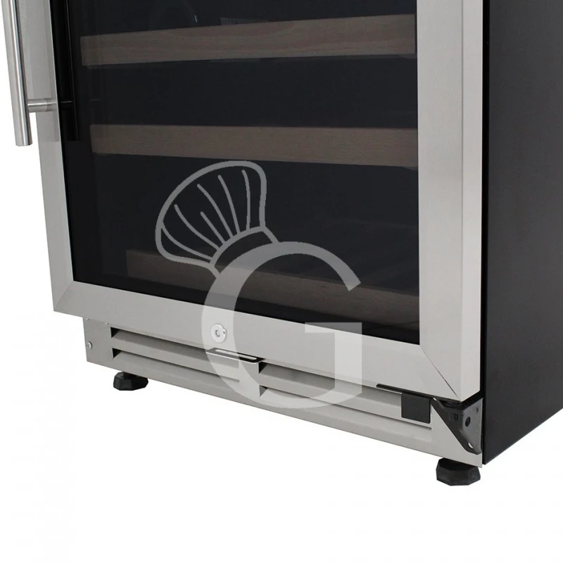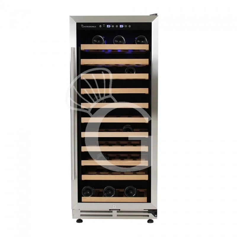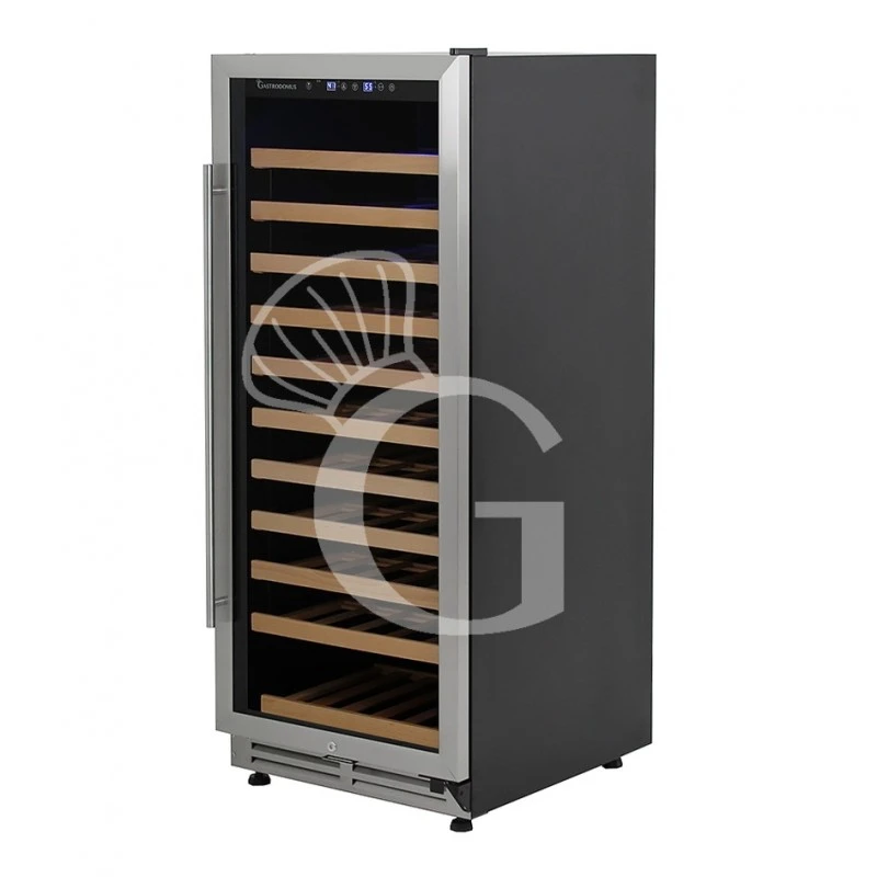 L’apparecchio ha una capacità di circa 121 bottiglie di capacità 750 ml (dimensione bottiglia: diametro 80 mm x H 300 mm) e presenta una zone refrigerate con la possibilità di regolare la temperatura in un range da +5°C/+22°C
