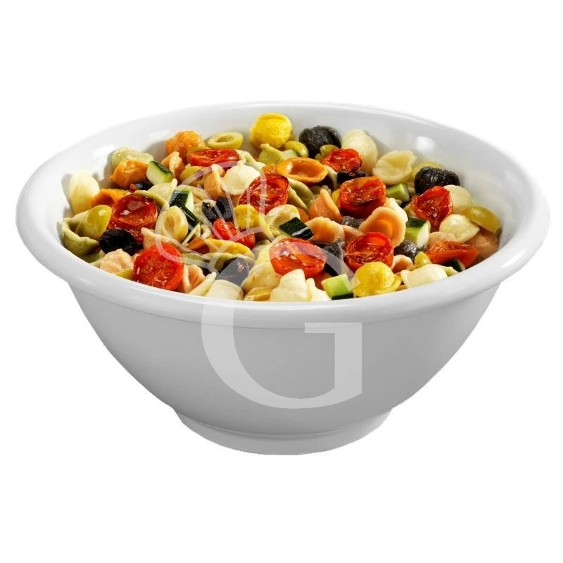 Ciotola rotonda in melamina, resina sintetica che si indurisce e prende forma dopo un processo di riscaldamento. È un materiale consigliato e utilizzato per i servizi in Tavola e Buffet.
