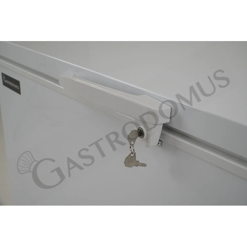Congelatore a pozzetto con capacità 280 litri, temperatura -18°C, classe F.