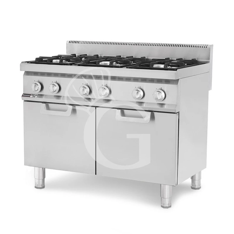 Cucina a gas con 6 fuochi su armadio chiuso, profondità 700 mm.
