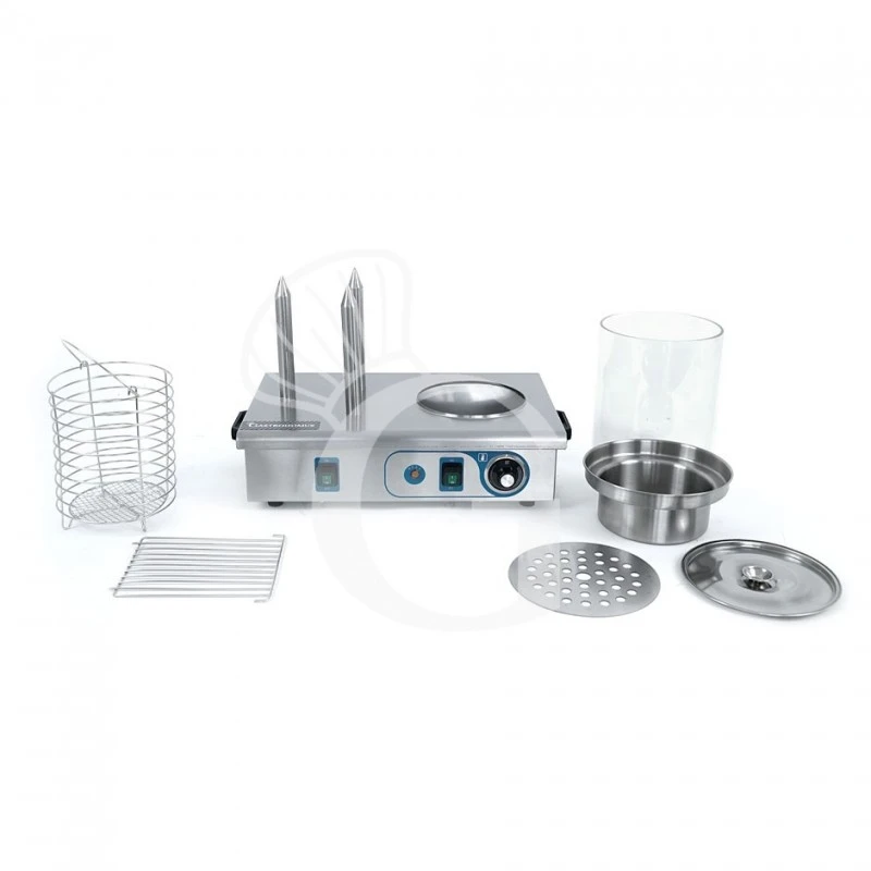 La struttura esterna è in acciaio inox. Una campana in vetro con all’interno un cestello in inox rotante permette una cottura dei würstel ottimale a bagno maria.