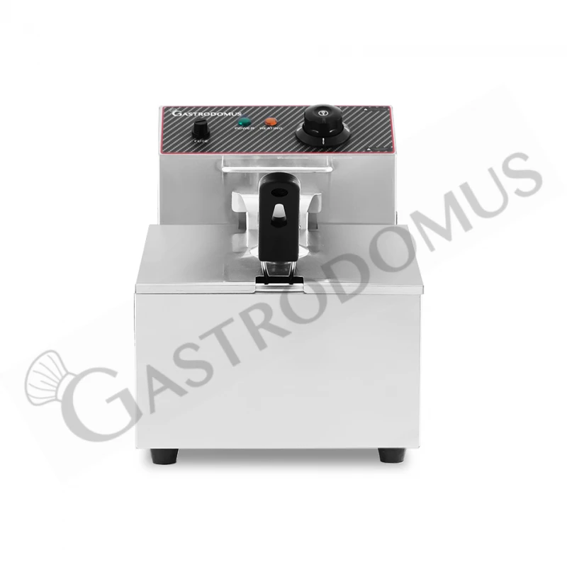 Friggitrice elettrica da banco con 1 vasca capacità 6 LT, potenza 2,5 KW, Monofase.
