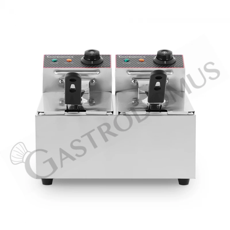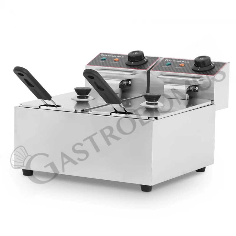 Friggitrice elettrica da banco con 2 vasche capacità 4+4 LT, potenza 1,8+1,8 KW, Monofase.