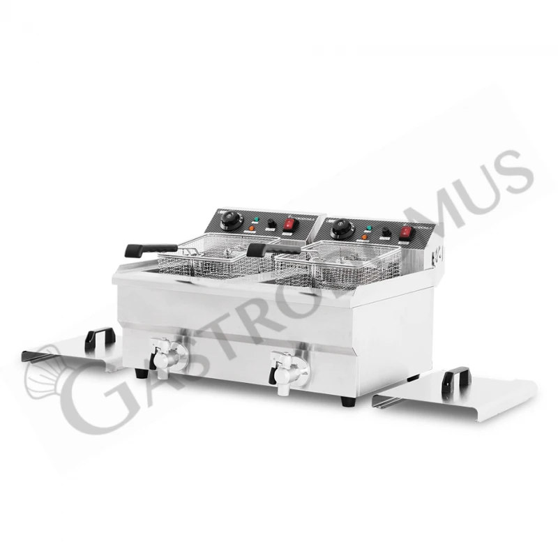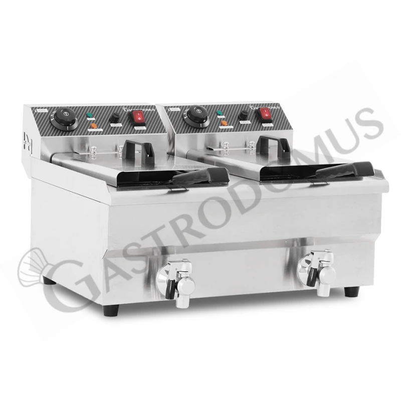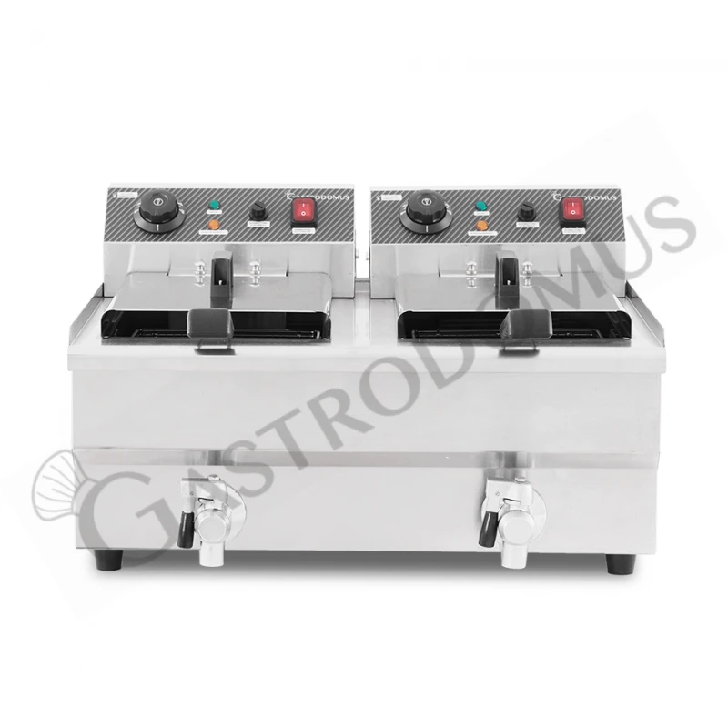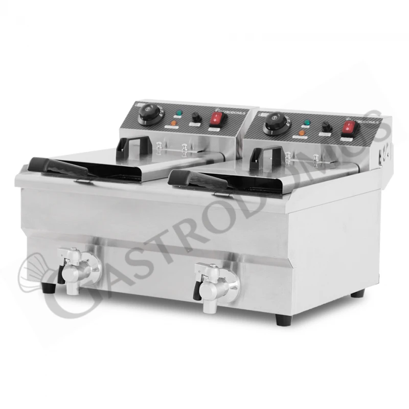 Friggitrice elettrica da banco con 2 vasche capacità 10+10 LT, potenza 3+3 KW, Monofase con rubinetto.