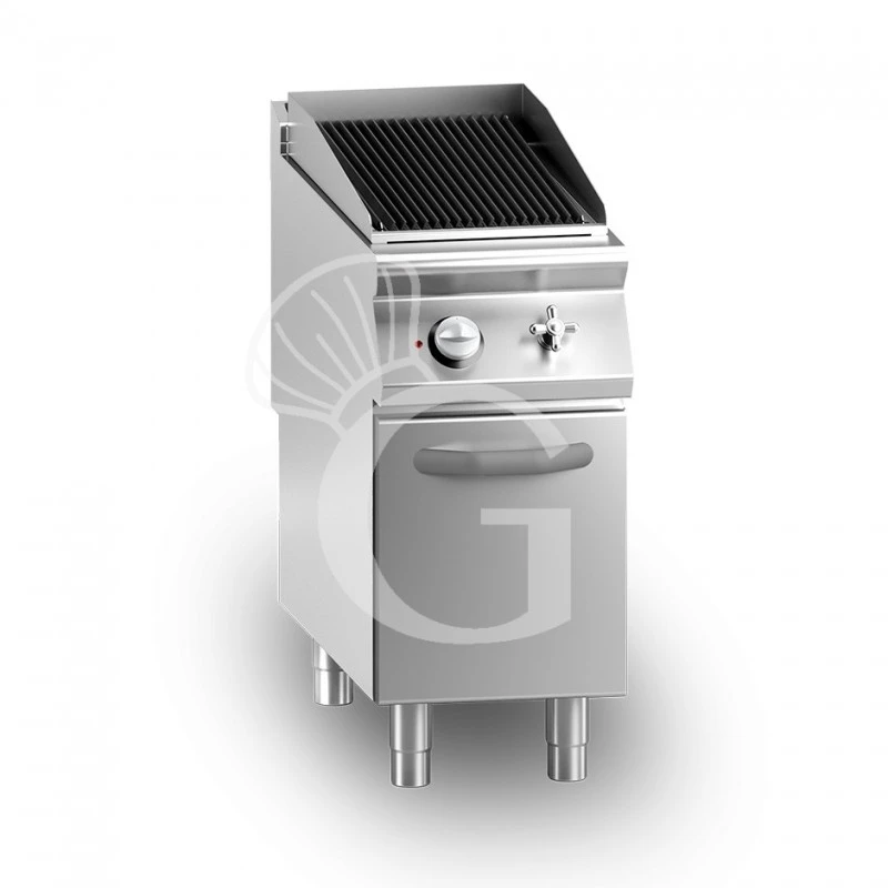 Griglia a gas e pietra lavica su armadio con 1 zona di cottura e profondità 900 mm.