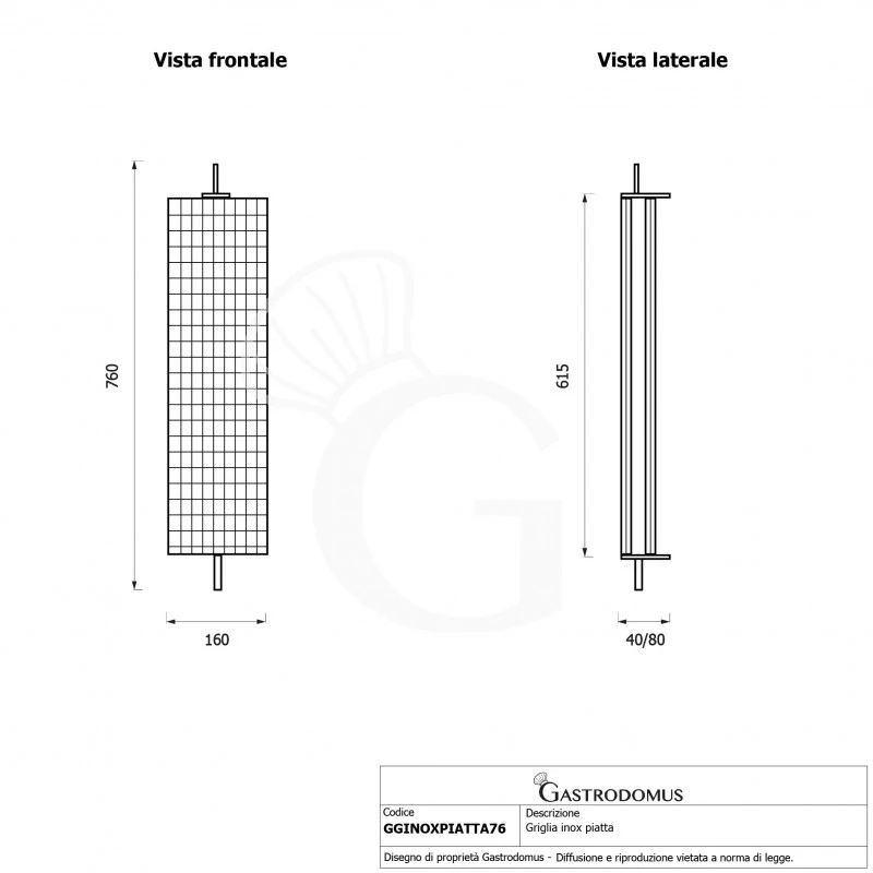 La griglia in acciaio inox piatta è indicata per la cottura di cosce, spiedini, ali e salsicce; regolando l’altezza del coperchio è inoltre possibile la cottura di galletti aperti e stinchi.