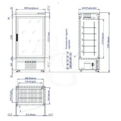 Vetrina Pasticceria Refrigerata Ventilato 880 LT -5°C/+10°C 4 Lati Vetro 2 Porte