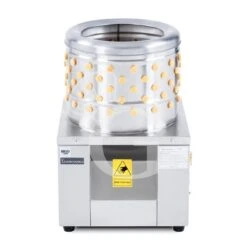 Il funzionamento del macchinario è a secco quindi è necessario prima della spiumatura procedere alla scottatura in acqua calda dei volatili per ammorbidire il piumaggio e facilitare il processo. La spiumatura avviene grazie all’attrito che si genera tra le dita di gomma i capi inseriti nel macchinario mantenuti in movimento dal piatto rotante alla base del tamburo. Il pannello comandi è intuitivo e presenta: Spia di tensione che indica che il macchinario è sotto tensione; Pulsante di avvio che indica la messa in moto dell’apparecchio; Il pulsante di stop che permette di fermare il ciclo di lavoro del macchinario.