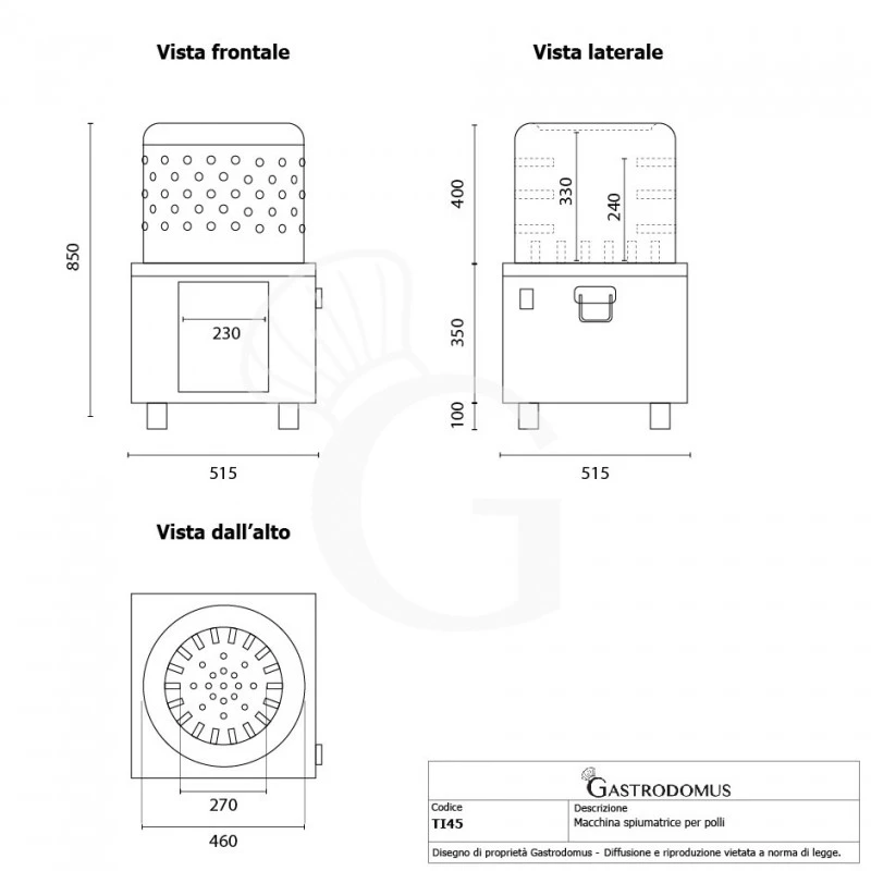 Macchina spiumatrice elettrica per polli a secco, cestello Ø 460 mm – 0,55KW.