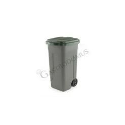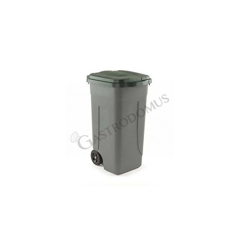Pattumiera verde e grigia in polietilene con capacità 80 litri.
