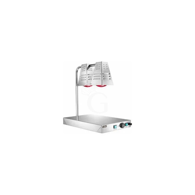 Piano caldo in inox con 2 lampade a raggi infrarossi 600 mm x 400 mm.