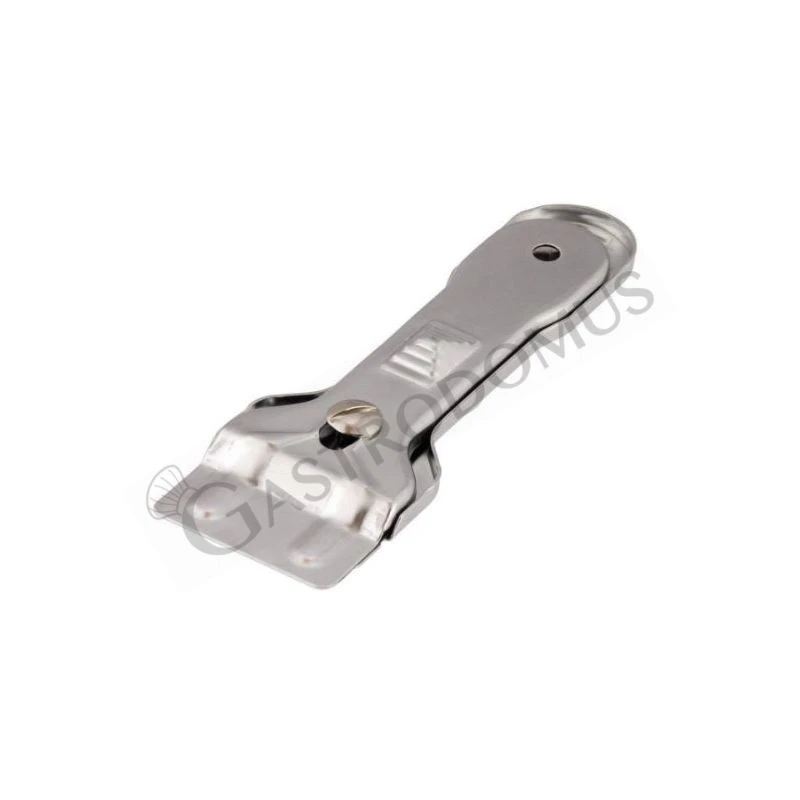 I piedini regolabili in altezza danno la possibilità di regolare la pendenza desiderata in caso di irregolarità della superficie di appoggio e grazie al pratico raschietto è possibile eliminare facilmente residui di cibo accidentalmente incrostati sul piano.