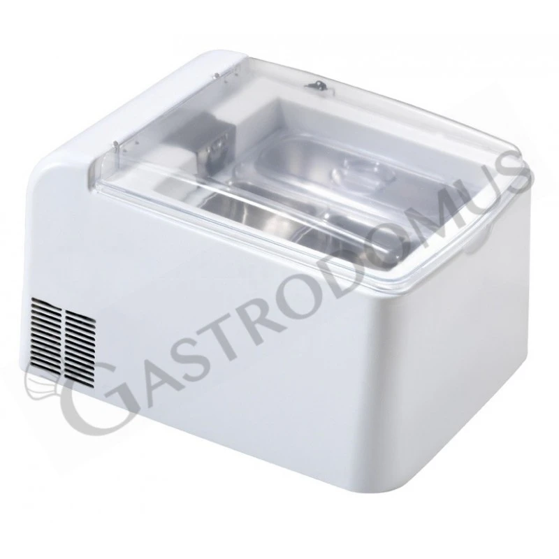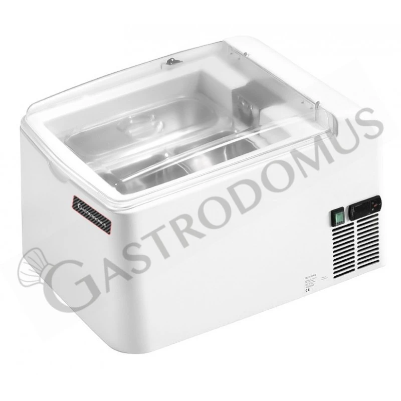 Refrigeratore da banco per gelato L 505 mm x P 680 mm x H 400 mm, predisposto per bacinelle da 7 Litri, 6,5 Litri, 5 Litri, 3 Litri, 2,5 Litri.