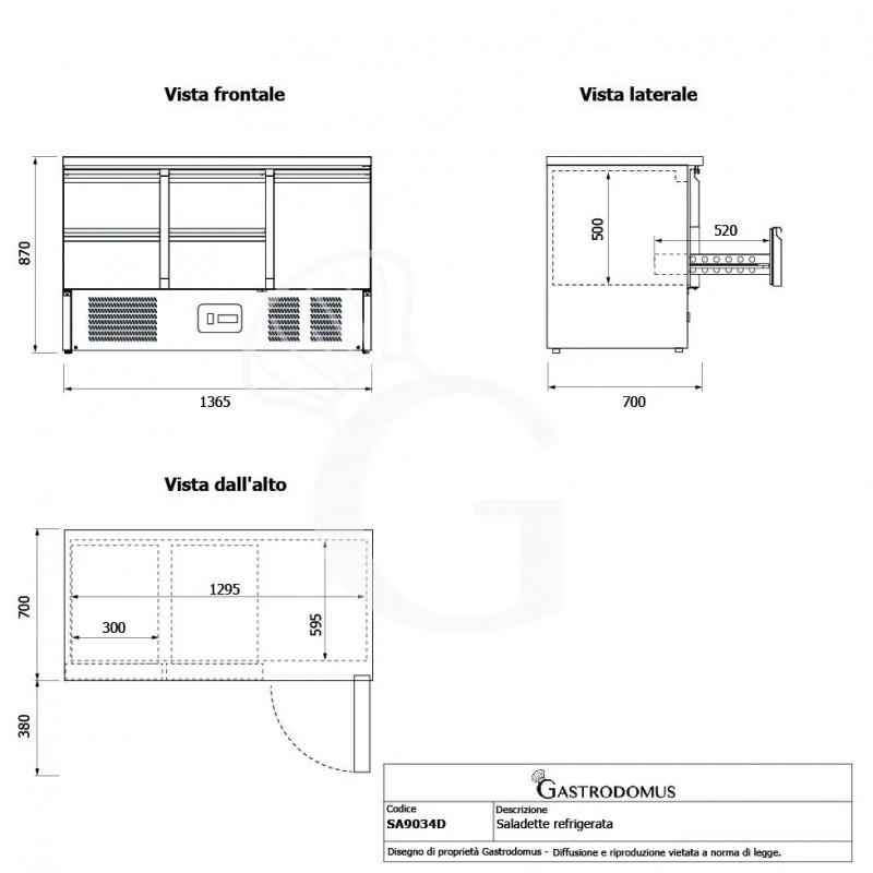 L 1295 mm x P 595 mm x H 500 mm - Profondità banco pizza