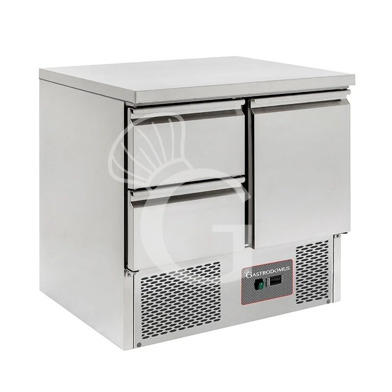 Saladette refrigerata 2 cassetti, 1 porta, temperatura +2°C/+8°C, piano in inox.