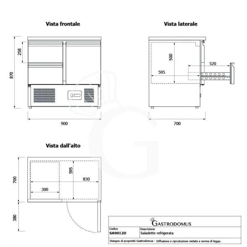 L 830 mm x P 595 mm x H 500 mm - Profondità banco pizza