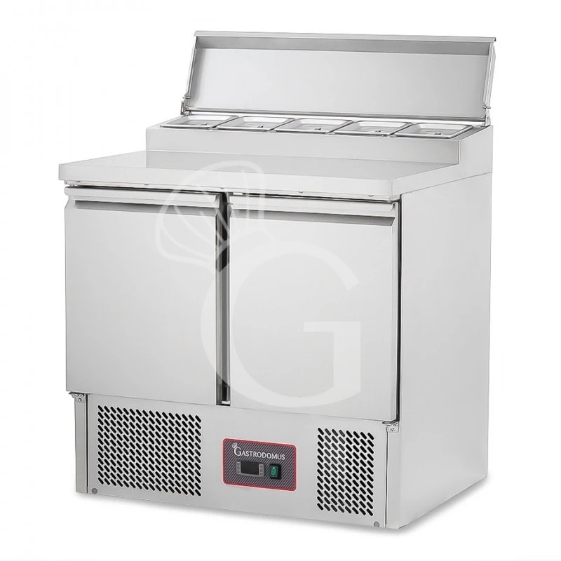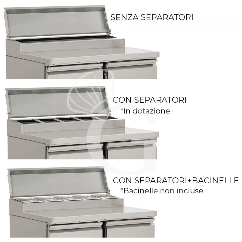 Saladette refrigerata con 2 porte, temperatura + 2°C/+ 8°C, coperchio in acciaio inox.