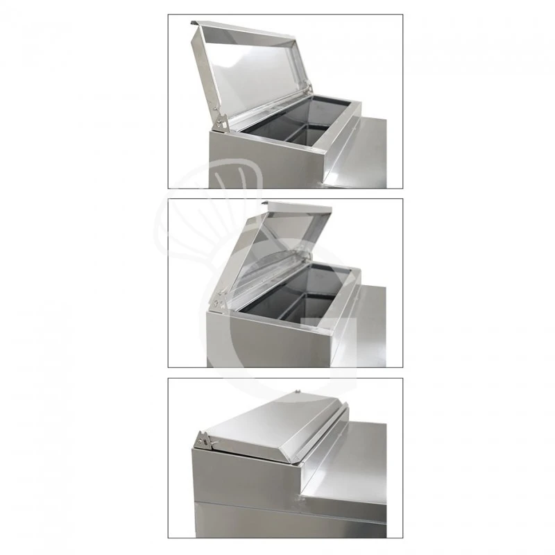 La saladette refrigerata statica ha una struttura interna ed esterna realizzata interamente in acciaio inox. La saladette ha anche un comodo coperchio in acciaio inox.