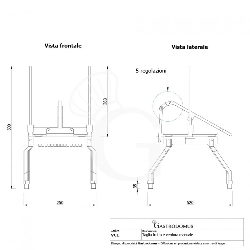 Taglia frutta e verdura manuale bastoncini e rondelle – dimensioni L 250 mm x P 520 mmx H 500 mm.