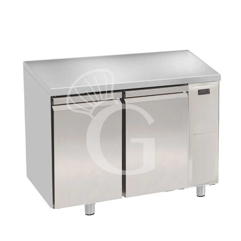Tavolo refrigerato con 2 porte, profondità 600 mm e temperatura 0°C/+10°C, predisposto per motore remoto.