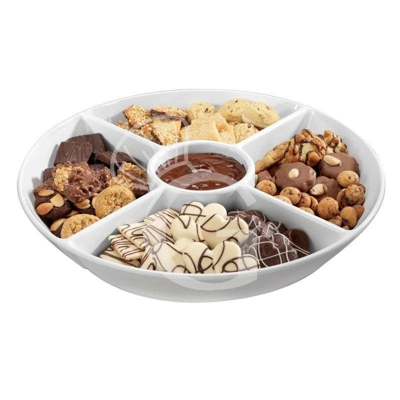 Vassoio a 5 scomparti realizzato in melamina, resina sintetica che si indurisce e prende forma dopo un processo di riscaldamento. È un materiale consigliato e utilizzato per i servizi in Tavola e Buffet.