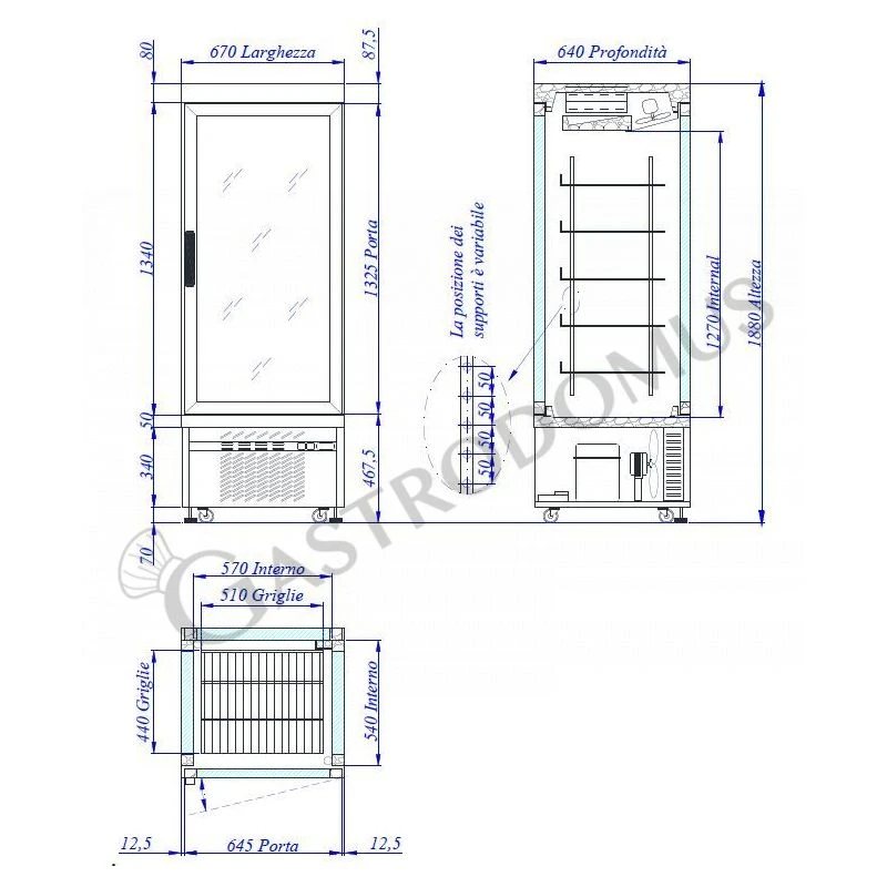 L 670 mm x P 640 mm x H 1880 mm - Dimensioni interne