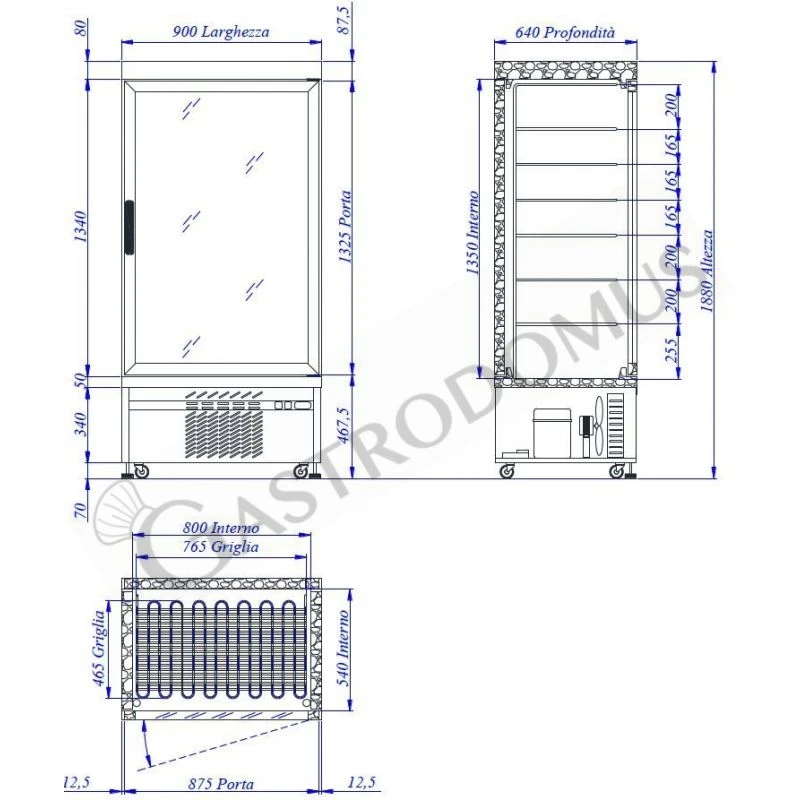 L 900 mm x P 640 mm x H 1880 mm - Dimensioni interne