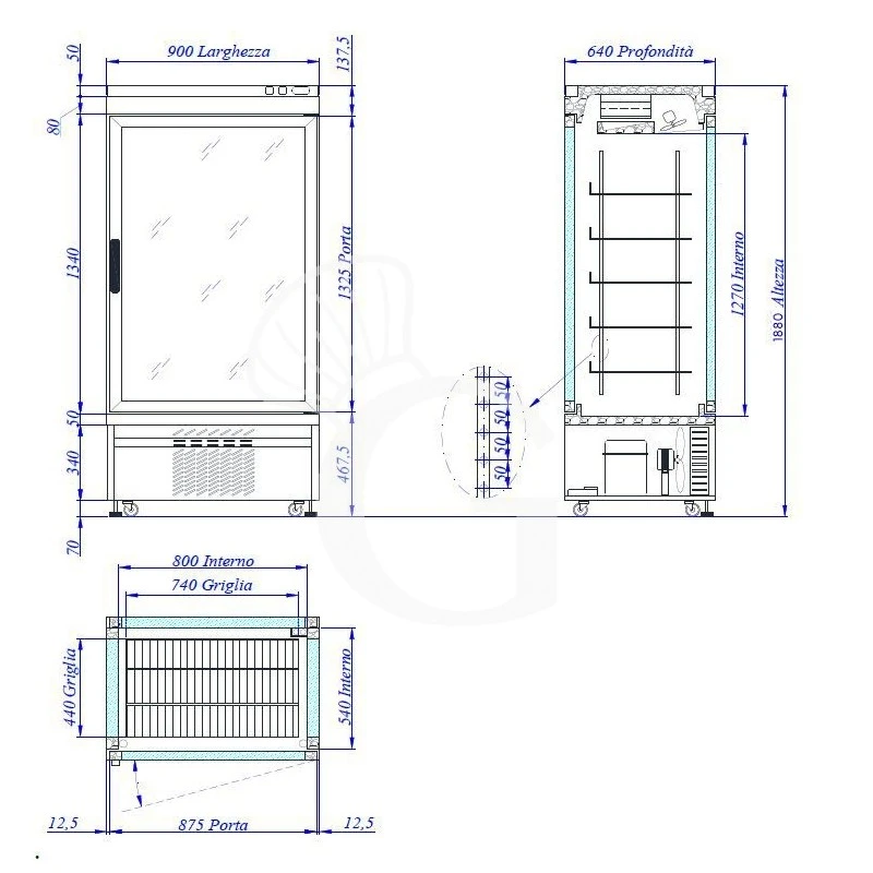 L 900 mm x P 640 mm x H 1880 mm - Dimensioni interne