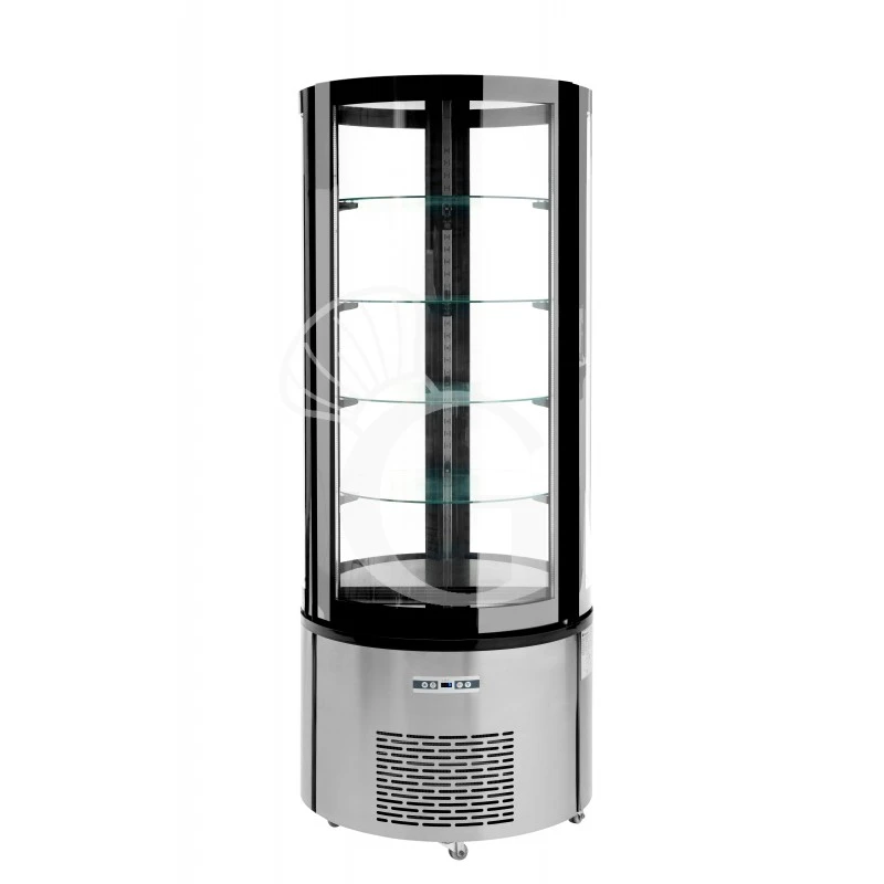 All’interno la vetrina presenta 4 ripiani in vetro regolabili in altezza del diametro di 530 mm per poter presentare al meglio i vostri prodotti.