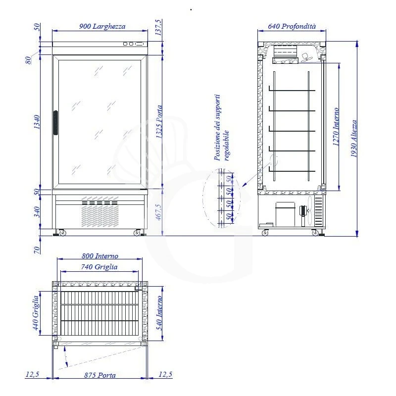 L 900 mm x P 640 mm x H 1930 mm - Dimensioni interne